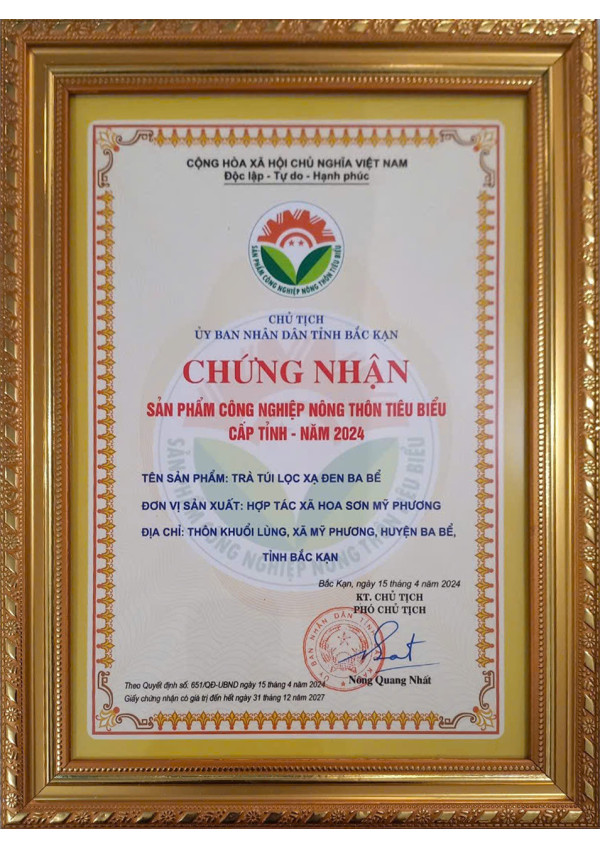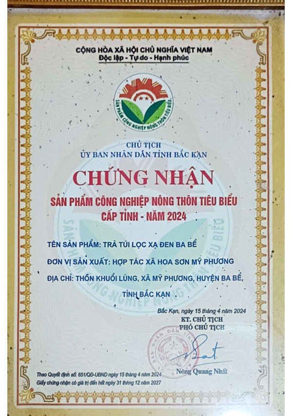 Đóng gói và bảo quản: Mỗi hộp trà là 100gam có 25 túi lọc/1 hộp. Đóng vào túi zip có kèm theo gói hút ẩm để chống ẩm, oxy hóa; dán nhãn với thông tin nguồn gốc (QR code truy xuất từ HTX Hoa Sơn- Mỹ Phương ), hạn sử dụng 12 tháng. Bảo quản nơi khô ráo, mát mẻ. Sản phẩm đạt Ocop 3 sao.
